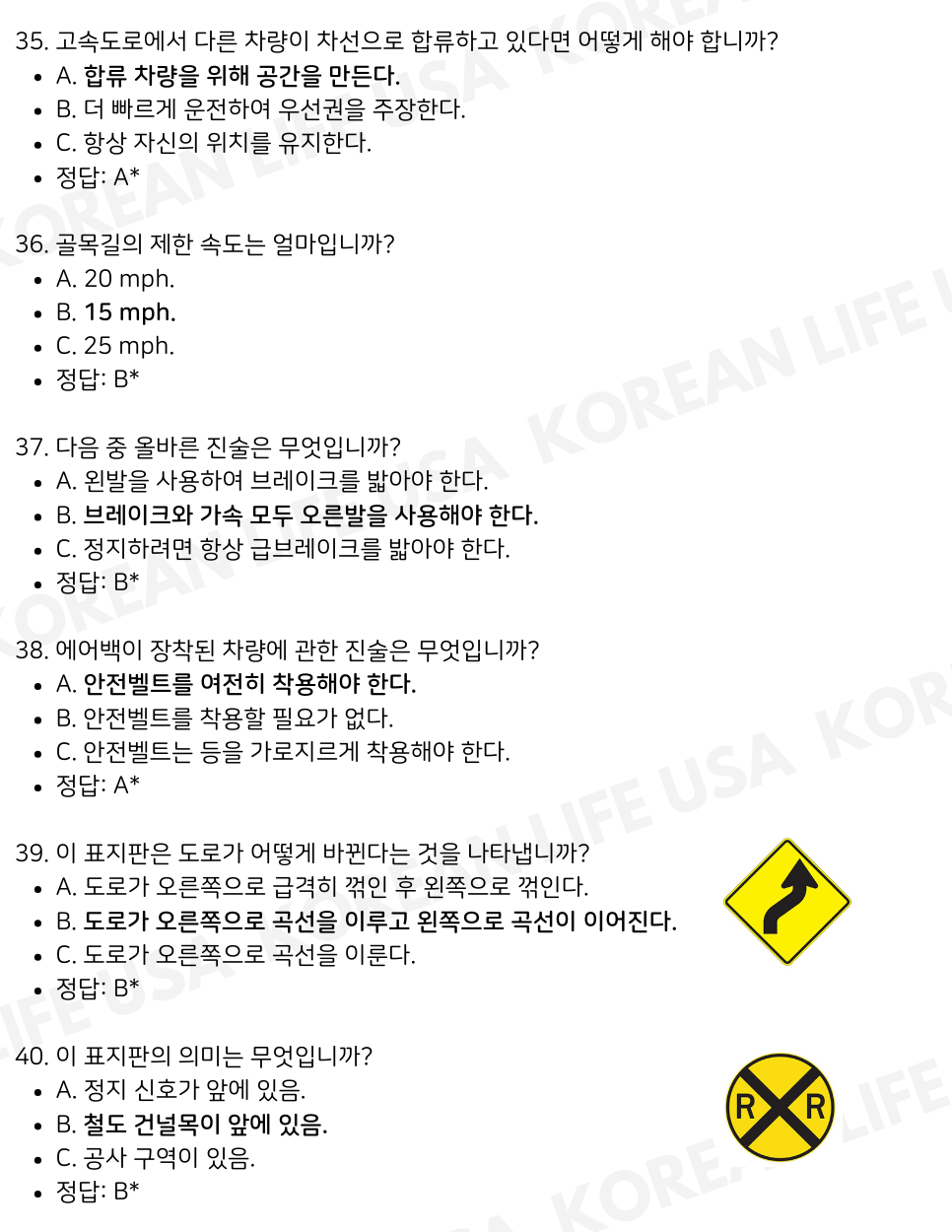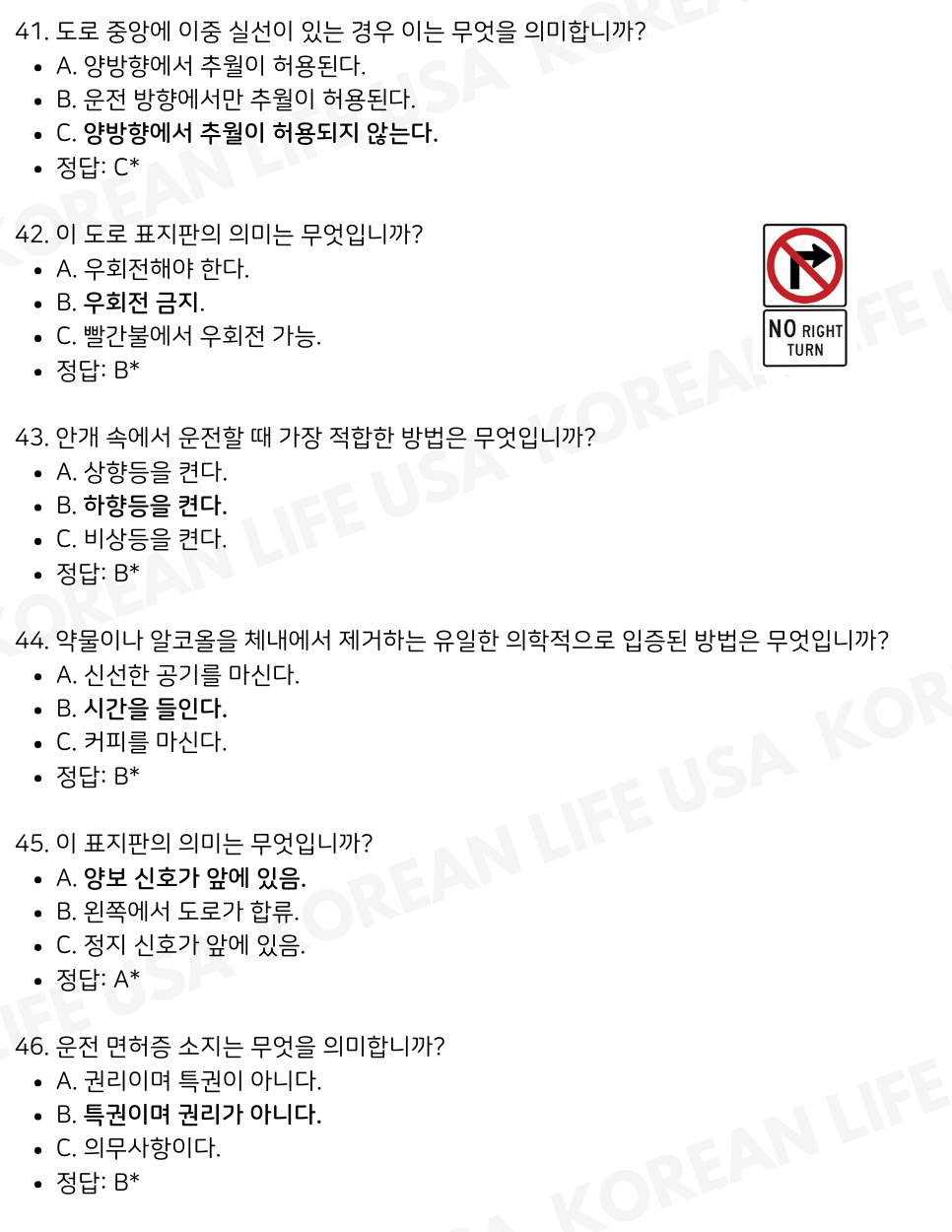 시험 문제를 정확히 이해하고 실수 없이 답변할 수 있다면 DMV 필기시험 합격은 시간문제입니다. 실수를 줄이는 연습을 통해 자신감을 키우세요. 다음 파트에서 더욱 다양한 유형의 문제로 찾아뵙겠습니다.