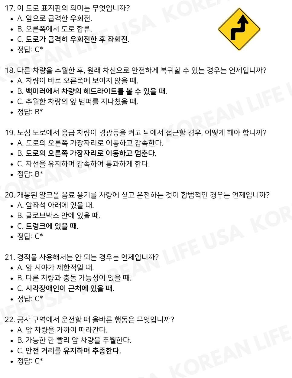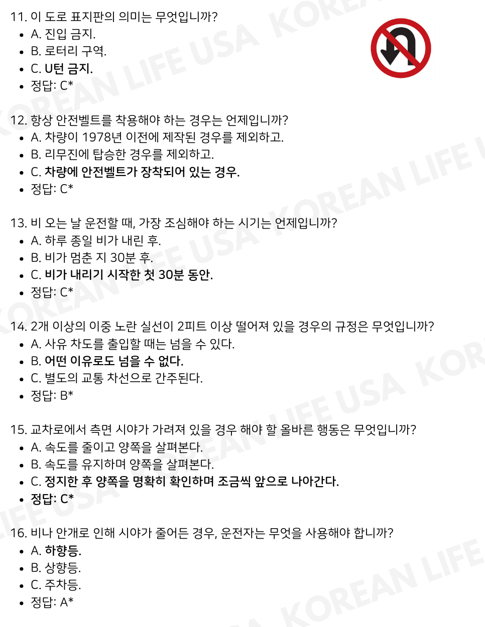 | 캘리포니아 DMV 필기시험 실전 테스트 세트 3 (0) | 2025.01.01 |