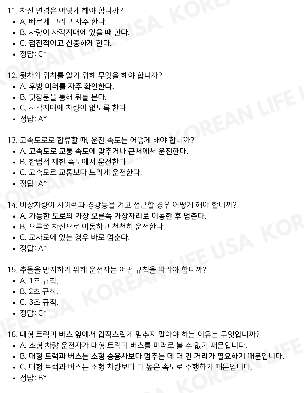 DMV 필기시험은 단순히 시험 합격이 아니라 도로 안전을 지키기 위한 중요한 과정입니다. 이 파트를 통해 최종 점검을 하고, 마지막 단계로 넘어가 보세요. 다음 파트는 완벽한 준비를 마무리하는 데 초점이 맞춰져 있습니다!