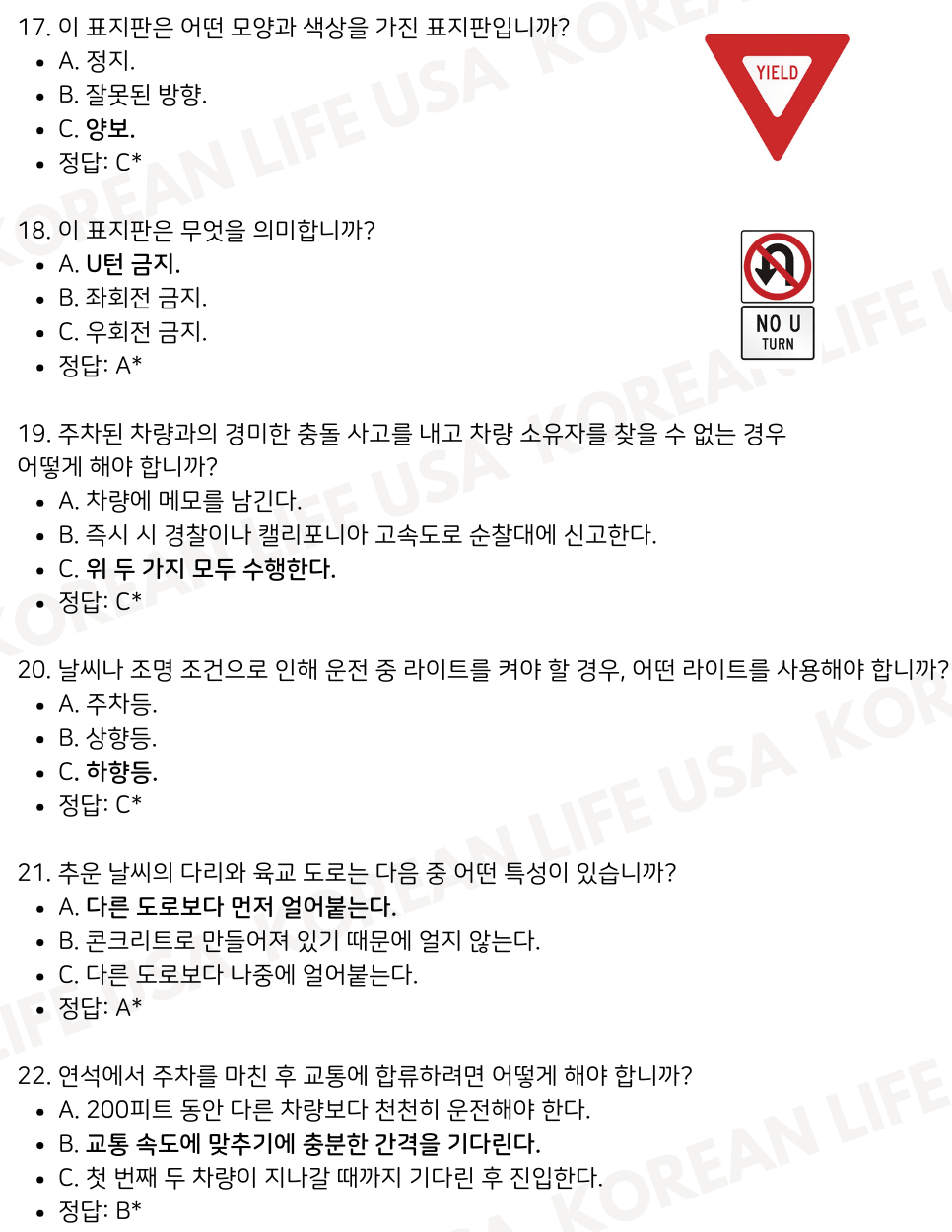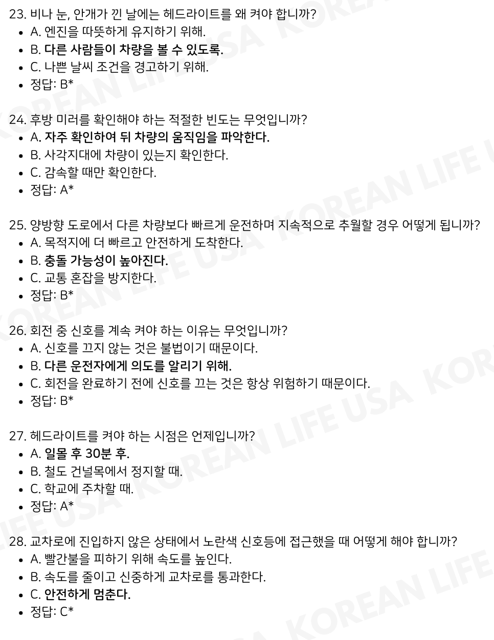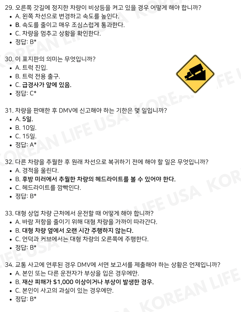 | 캘리포니아 DMV 필기시험 실전 테스트 세트 7 (0) | 2025.01.02 |